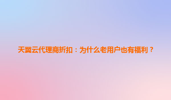 2025-06-04天翼云代理商折扣揭秘:为什么忠诚老用户同样享受专属福利? 一、打破行业惯例:老用户不再是"沉默的大多数" 在云计算市场,普遍存在"新人笑旧人哭"的现象——新用户享受高额补贴,老用户却...