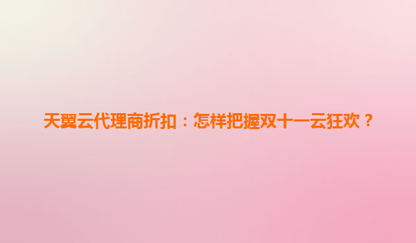 2025-06-03天翼云代理商折扣:怎样把握双十一云狂欢? 双十一不仅是消费品的购物盛宴,更是企业数字化转型的关键机遇。作为天翼云代理商,如何借助平台优势与双十一政策红利,为客户创造价值同时提升自身...