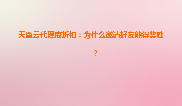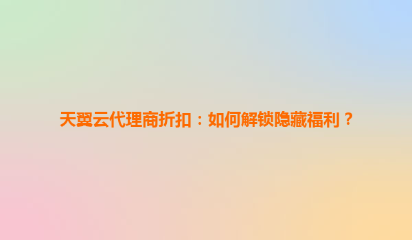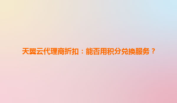 2025-06-03天翼云代理商折扣与积分兑换服务解析:灵活合作模式下的双赢之道 一、标题核心解析:代理商折扣与积分兑换的双重诉求 标题包含两大关键信息点:代理商折扣政策与积分兑换可行性。这反映出用户对天翼云合作...