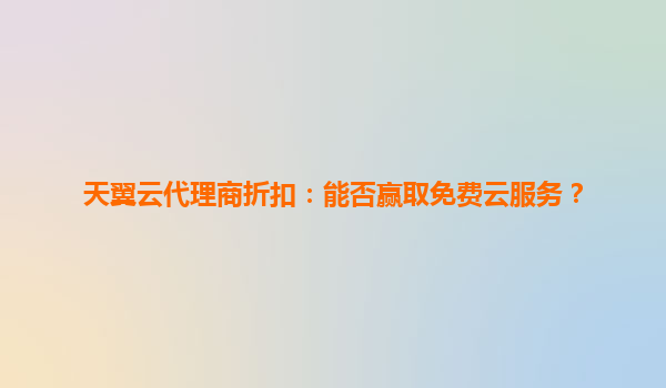 2025-06-03天翼云代理商折扣:能否赢取免费云服务? 在数字化转型浪潮中,天翼云凭借其独特优势成为企业上云的重要选择。许多用户关注通过代理商折扣获取云服务的可能性,甚至期待实现"免费云服务"。本文...