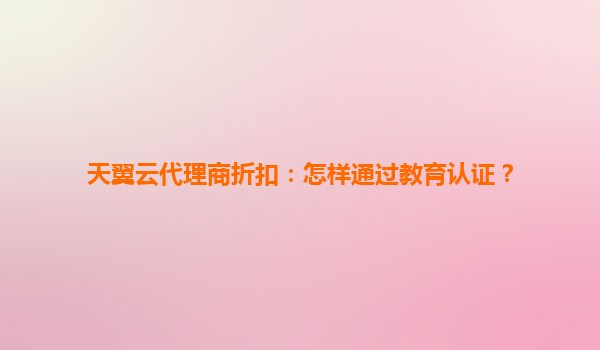 2025-05-31天翼云代理商折扣:怎样通过教育认证? 引言:教育认证与代理商折扣的战略价值 在数字化转型浪潮中,天翼云作为中国电信旗下云服务品牌,依托央企背景和全国覆盖的云网融合基础设施,为教育行业提供高安全...