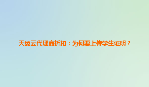 2025-05-31天翼云代理商学生折扣:为何需要上传学生证明? 随着云计算在高校科研和学习中的普及,天翼云通过代理商推出专属学生折扣政策,助力教育数字化。但申请过程中需上传学生证明,这一要求引发部...