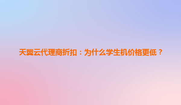 2025-05-31天翼云代理商折扣:为什么学生机价格更低? 引言:云计算市场的教育布局 在数字化转型浪潮中,天翼云作为中国电信旗下的云计算品牌,依托运营商级基础设施和央企背景,持续深耕教育领域...