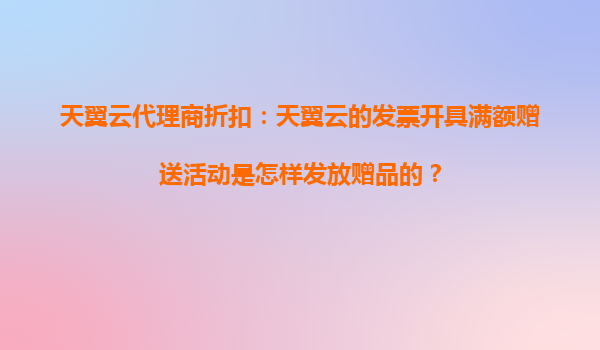 2025-10-20天翼云代理商折扣:天翼云的发票开具满额赠送活动是怎样发放赠品的? 天翼云作为中国电信旗下的云计算服务品牌,凭借其强大的技术实力和丰富的行业经验,已成为国内云计算市场的重要参与者之一。为了更好地服务客...