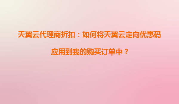 2025-10-20天翼云代理商折扣:如何轻松将定向优惠码应用到购买订单? 为什么选择天翼云? 天翼云作为中国电信旗下的云计算服务品牌,依托强大的基础设施和网络资源,为用户提供稳定、安全、高效的云...
