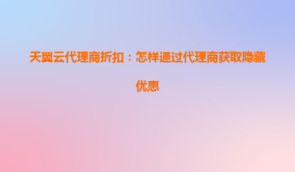 2025-05-29天翼云代理商预付费折扣深度解析:如何精准计算实际成本 在数字化转型浪潮中,云计算成本控制成为企业核心关注点。作为中国电信旗下云服务品牌,天翼云通过代理商体系为企业提供更具性价比的采...