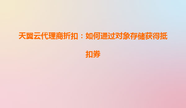 2025-05-29天翼云代理商折扣攻略:如何通过对象存储获得抵扣券 一、理解标题核心:代理商与对象存储的联动价值 标题包含三个关键维度:代理商身份、对象存储服务和抵扣券获取。作为天翼云代理商,需深度掌握通过推广对...
