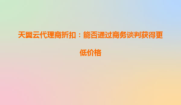 2025-05-28一、商务谈判是获取天翼云代理折扣的重要途径 在云计算市场竞争日益激烈的背景下,天翼云作为国内领先的云服务提供商,始终以客户需求为核心。对于企业用户而言,通过代理商合作获取云服务资源已成为主流选...