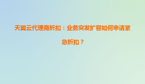 2025-05-26天翼云代理商折扣:业务突发扩容如何申请紧急折扣? 一、业务突发扩容的挑战与天翼云的核心优势 在数字化转型加速的背景下,企业业务流量突发性增长已成为常态。面对此类场景,传统IT架构往往面临...