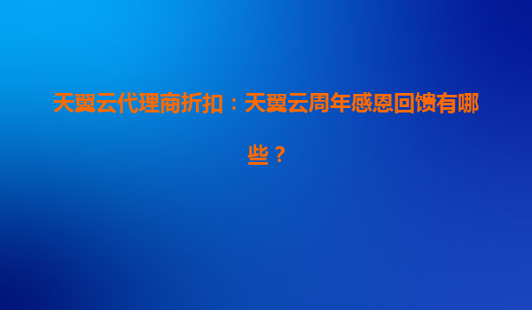 2025-05-26天翼云周年感恩回馈:携手代理商,共赢云端未来 一、天翼云周年庆活动重磅来袭 值此天翼云成立周年之际,为答谢广大用户与合作伙伴的长期支持,天翼云推出“周年感恩回馈”系列活动...