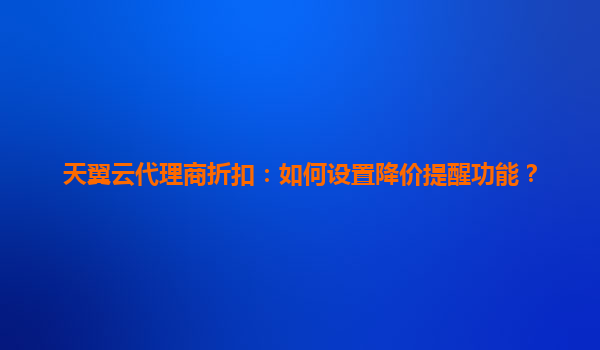 2025-05-25天翼云代理商折扣:如何设置降价提醒功能? 一、为什么需要设置降价提醒功能? 在云计算市场竞争日益激烈的今天,企业用户对成本控制的敏感度越来越高。天翼云作为国内领先...