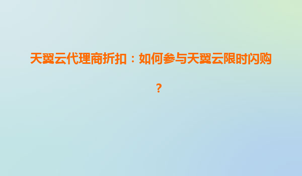 2025-05-23天翼云代理商折扣:如何参与天翼云限时闪购? 一、天翼云的核心优势 安全可靠:作为中国电信旗下品牌,天翼云通过国家三级等保认证,数据存储与传输全程加密,满足...