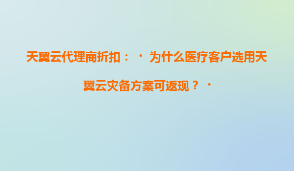 2025-05-22医疗行业为何选择天翼云灾备方案?代理商折扣与返现机制解析 一、医疗行业灾备需求的核心痛点 医疗行业作为关乎民生的关键领域,对数据安全和业务连续性要求极高。电子病历、影像档案、...