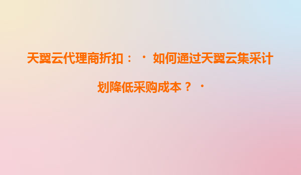 2025-05-22如何通过天翼云集采计划与代理商合作降低企业采购成本? 在数字化转型加速的今天,云计算已成为企业降本增效的核心工具。作为中国电信旗下的云计算服务品牌,天翼云凭借其独特的资源和技术优势,通...