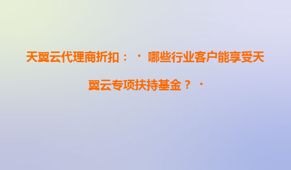 2025-05-22天翼云代理商折扣与专项扶持基金:助力行业客户数字化转型 随着数字化转型浪潮的推进,云计算成为企业降本增效的核心工具。天翼云作为国内领先的云服务提供商,凭借其技术实力与生态资源,为各行业...