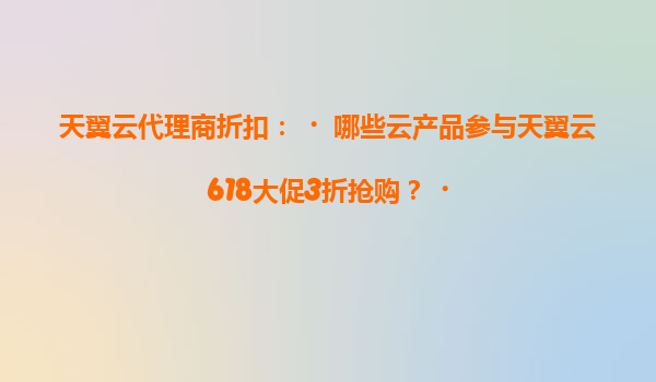 2025-05-21天翼云618大促火热开启,核心云产品3折抢购! 一、天翼云618大促重点参与产品清单 本次大促覆盖天翼云10大核心产品线,为企业提供超高性价比上云选择: 弹性计算云主机-通用型/内存优化...