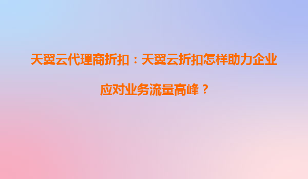 天翼云代理商折扣:助力企业灵活应对业务流量高峰 一、业务流量高峰的挑战与云服务的必要性 在数字化时代,企业业务流量的波动性显著增强。无论是电商大促、在线教育直播还是金融交易峰值,突发的...