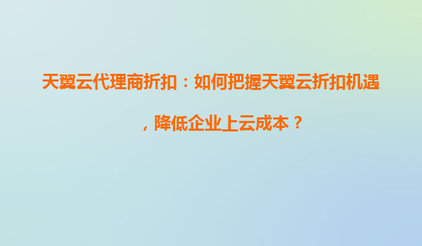天翼云代理商折扣:助力企业高效云端转型的核心动力 一、天翼云的核心优势解析 1.强大的基础设施与网络资源 天翼...