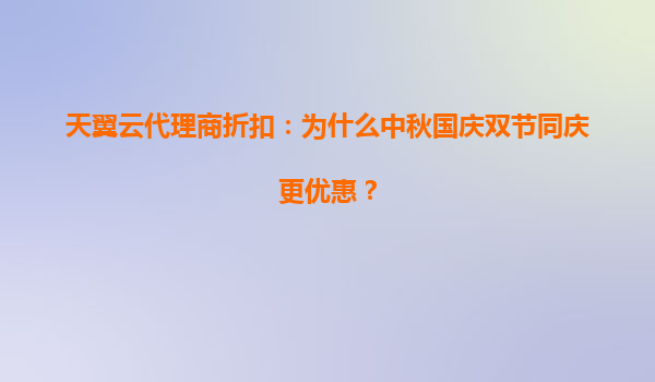 2025-05-18天翼云代理商折扣:中秋国庆双节同庆为何更优惠? 一、双节同庆背后的促销逻辑与用户需求 中秋与国庆双节叠加的消费窗口期,是企业级市场开展促销活动的黄金时段。天翼云选择此时推出代理商折扣升级策...