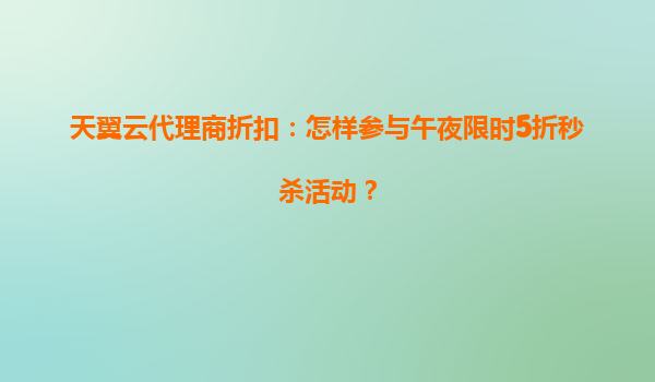 2025-05-18天翼云午夜限时5折秒杀活动:代理商专属福利不容错过 活动亮点与参与价值 天翼云作为国内领先的云服务提供商,始终以技术创新为核心,此次推出的午夜限时5折秒杀活动,专为代理商打造。参与者...