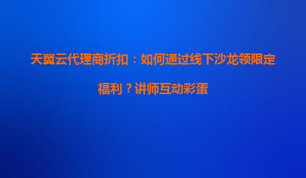 2025-05-17天翼云代理商折扣:线下沙龙解锁限定福利与深度合作机遇 一、线下沙龙——代理商生态的核心桥梁 在数字化转型加速的背景下,天翼云通过线下沙龙打造代理商与平台的深度互动场景。活动聚...