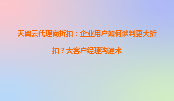 2025-05-17天翼云优势解析与企业用户谈判更大折扣的实战策略 一、天翼云的核心竞争力解析 在与天翼云代理商谈判前,企业需充分理解其核心优势,这些价值点将成为谈判的重要筹码: 央企级安全体系:依托...