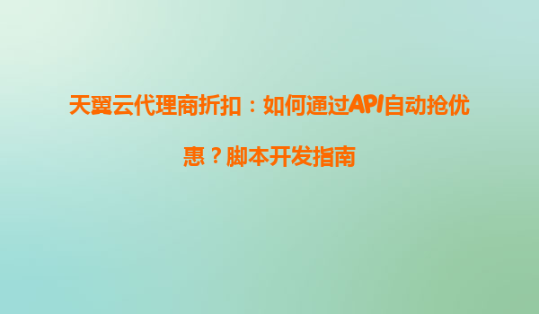 2025-05-17天翼云代理商折扣:如何通过API自动抢优惠?脚本开发指南 一、天翼云与代理商的协同优势 天翼云的核心优势:作为中国电信旗下云计算品牌,天翼云凭借央企背景提供高可靠、高安全的云服务,覆盖计...