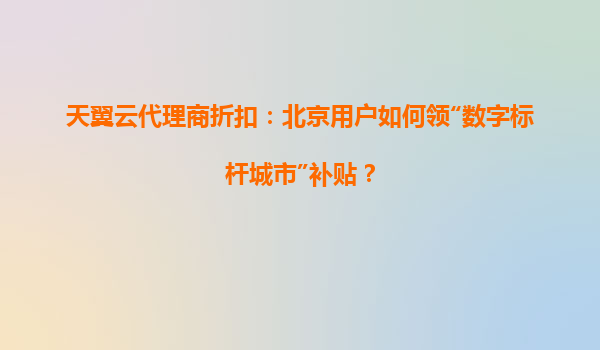 2025-05-17天翼云代理商折扣与北京“数字标杆城市”补贴政策详解 一、政策背景与补贴意义 北京市作为全国首批“数字标杆城市”试点,2023年起推出专项补贴计划,鼓励企业通过云计算服务实现数字化转型。天翼云作...