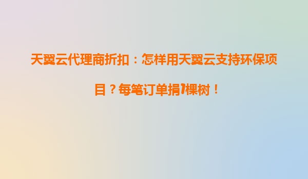 天翼云携手环保:每一笔订单都为地球添一份绿意 在数字经济与可持续发展深度融合的今天,天翼云以"科技赋能绿色未来"为使命,推出创新性环保计划——用户每完成一笔天翼云代理商订单,企业即向环保组织捐赠一棵...