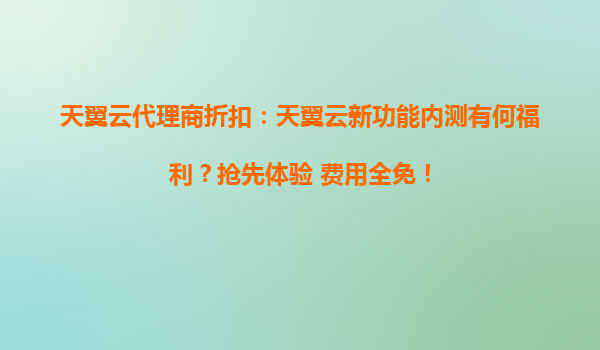 2025-05-11天翼云新功能内测福利来袭:抢先体验+费用全免,代理商折扣助力企业上云 天翼云新功能内测:技术创新的前沿阵地 天翼云作为国内领先的云服务提供商,始终以技术创新为核心驱动力。此...