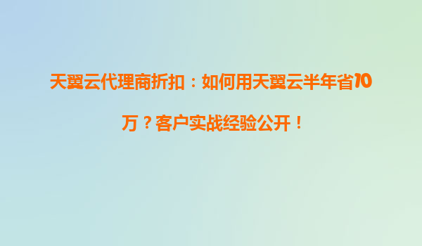 2025-05-11天翼云代理商折扣:如何用天翼云半年省10万?客户实战经验公开! 一、为什么企业纷纷选择天翼云? 在数字化转型的浪潮下,云计算成为企业降本增效的核心工具。天翼云凭借其央企背景、全栈自研技术及本...