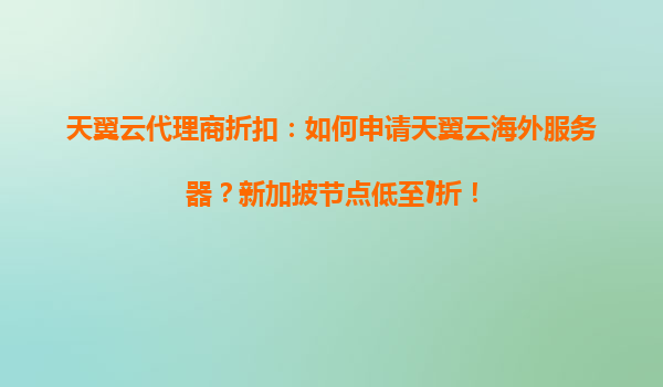 天翼云海外服务器申请指南:新加坡节点低至1折,代理商助您轻松上云 随着全球数字化转型的加速,企业对于高效、稳定的云服务器需求日益增长。天翼云作为中国电信旗下的云计算服务品牌,凭借...