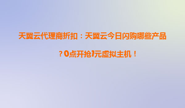 2025-05-10天翼云今日闪购狂欢:1元虚拟主机领衔,代理商折扣助力企业上云 一、天翼云闪购惊喜:0点开抢爆款云产品 今日天翼云闪购活动再度引爆云端!作为中国电信旗下云计算品牌,天翼云此次推出多款限量特...