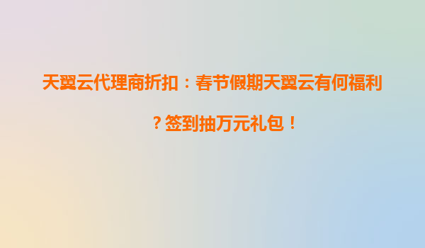 2025-05-10春节狂欢季,天翼云多重福利重磅来袭! 签到抽万元礼包,代理商专属折扣助力企业上云 一、天翼云春节福利活动亮点 为迎接2024年春节,天翼云推出"新春上云狂欢...