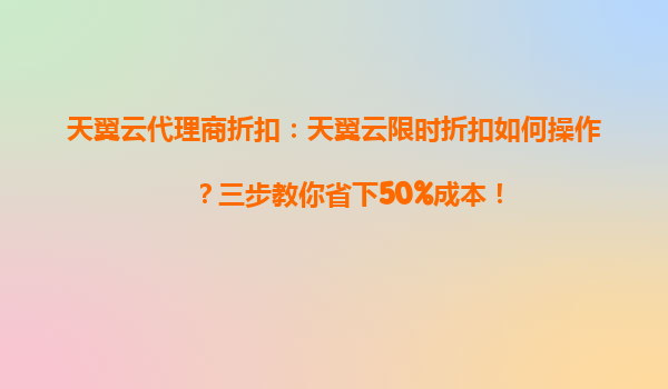 2025-05-09天翼云限时折扣如何操作?三步教你省下50%成本! 一、为什么选择天翼云?——核心优势解析 作为中国电信旗下的云计算品牌,天翼云凭借以下优势成为企业数字化转型的首选: 技术领先...