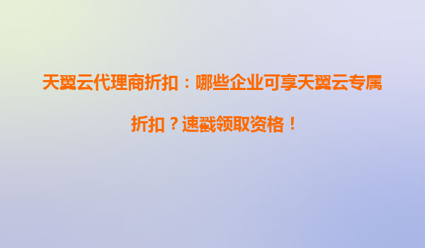 2025-05-09天翼云代理商折扣:谁适合抢千元优惠券? 随着企业数字化转型加速,云计算服务成为刚需。天翼云凭借其技术实力与资源优势,推出代理商折扣活动,为用户提供高性价比的云服务解决方案。本文将从用户...