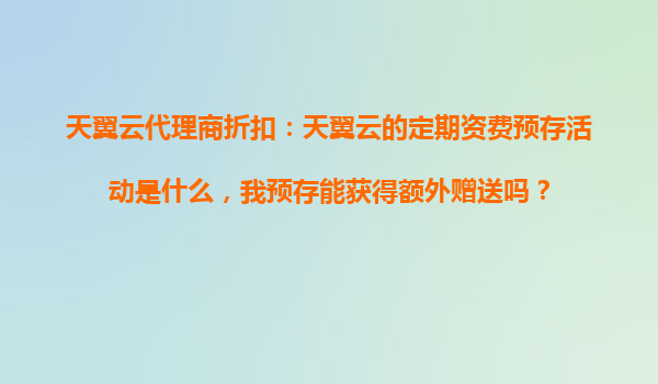 2025-10-17天翼云代理商折扣解析:定期资费预存活动与额外赠送详解 一、天翼云定期资费预存活动是什么? 天翼云作为中国电信旗下的云计算服务品牌,为企业和个人用户提供稳定、安全、高效的云服务。为了...