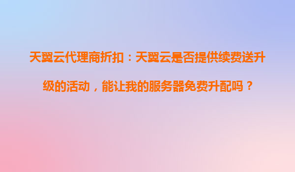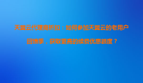 2025-10-17天翼云代理商折扣:如何参加天翼云老用户回馈季,获取更高的续费优惠额度? 一、天翼云老用户回馈季活动简介 天翼云作为中国电信旗下的云计算服务品牌,长期致...