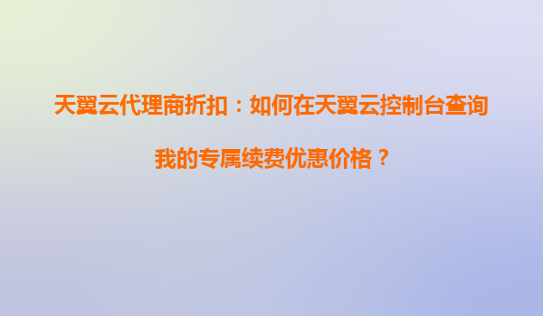 2025-10-17天翼云代理商折扣:如何在天翼云控制台查询我的专属续费优惠价格? 一、天翼云与代理商的双重优势 天翼云作为中国电信旗下的云计算服务品牌,凭借强大的基础设施和稳定的网络资源,为企业用户提供了...
