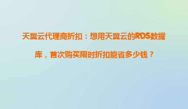 天翼云RDS数据库限时折扣:首次购买省多少钱?天翼云三大优势解析 一、天翼云RDS限时折扣究竟能省多少? 作为天翼云官方代理商,我们可以确认:针对首次购买RDS(关系型...