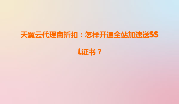 2025-04-27天翼云代理商折扣:如何开通全站加速并免费获取SSL证书? 随着企业数字化转型的加速,高效、安全的网络服务成为业务发展的核心需求。天翼云作为国内领先的云服务提供商,凭借其强大的技术实力和丰...