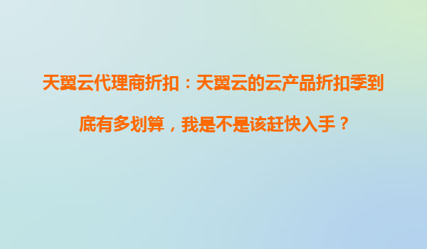 2025-10-16天翼云代理商折扣季:云产品到底有多划算?现在入手正当时! 一、天翼云折扣季的诱人优惠 每年天翼云的折扣季都是企业采购云服务的黄金窗口期,今年代理商推出的专项折扣更是力度空前: ...