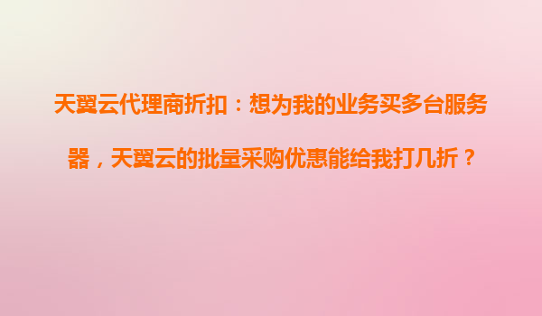 2025-10-16天翼云代理商折扣解析:如何通过批量采购获取最优服务器价格 一、天翼云批量采购的优惠政策 天翼云作为中国电信旗下的云计算服务提供商,针对企业级客户提供了灵活的批量采购方案。通常情况下,购...
