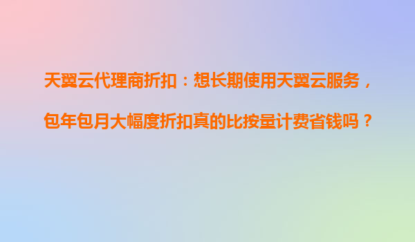 天翼云代理商折扣:包年包月与按量计费的成本效益分析 引言 随着企业数字化转型加速,云计算服务成为IT基础设施的核心选择。天翼云作为中国电信旗下的云计算品牌,凭借其稳定、安全的服务赢得了众多企...