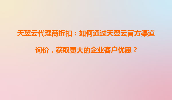 2025-10-16天翼云代理商折扣:如何通过天翼云官方渠道询价,获取更大的企业客户优惠? 一、引言 随着数字化转型不断深入,云计算已成为企业提升效率和降低成本的关键工具。在中国电信旗下天翼云的赋能下,众多企业成功实现了...
