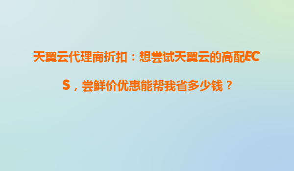 2025-10-16天翼云代理商折扣:高配ECS尝鲜价究竟能省多少钱? 一、为什么选择天翼云高配ECS? 在中国云计算市场竞争日益激烈的今天,天翼云作为中国电信旗下的云计算服务品牌,凭借央企背景和技术...