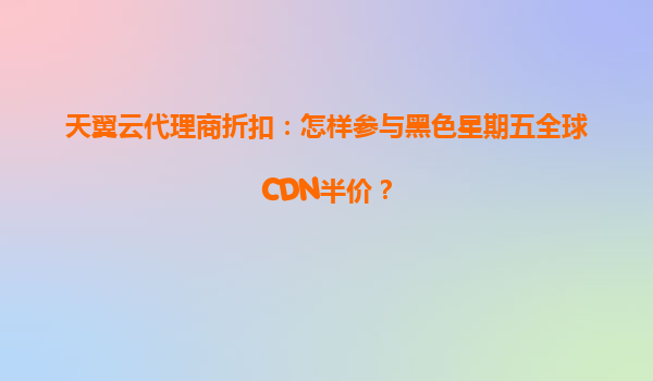 2025-04-26天翼云黑色星期五全球CDN半价活动重磅来袭 在数字化转型浪潮下,CDN(内容分发网络)已成为企业提升用户体验的核心工具。值此黑色星期五全球购物狂欢节之际,天翼云推出「全球CDN半价」限时特惠,...