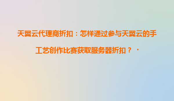 2025-04-21天翼云手工艺创作比赛:以创意赢取服务器折扣新机遇 在数字化转型浪潮中,云计算已成为企业发展的核心驱动力。作为国内领先的云服务提供商,天翼云始终致力于为用户提供优质服务...