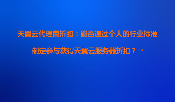2025-04-21天翼云代理商折扣:通过行业标准制定参与能否获得服务器折扣? 一、天翼云的核心优势解析 作为中国电信旗下云计算品牌,天翼云凭借以下核心能力领跑行业: 安全可信的底层架构:通过国家...