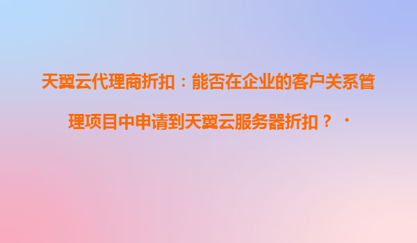 2025-04-21天翼云代理商折扣在企业客户关系管理项目中的应用分析 一、天翼云的核心优势解析 作为中国电信旗下的云计算品牌,天翼云在以下领域展现显著优势: 安全合规性保障:通过国家三级等保认证,满...